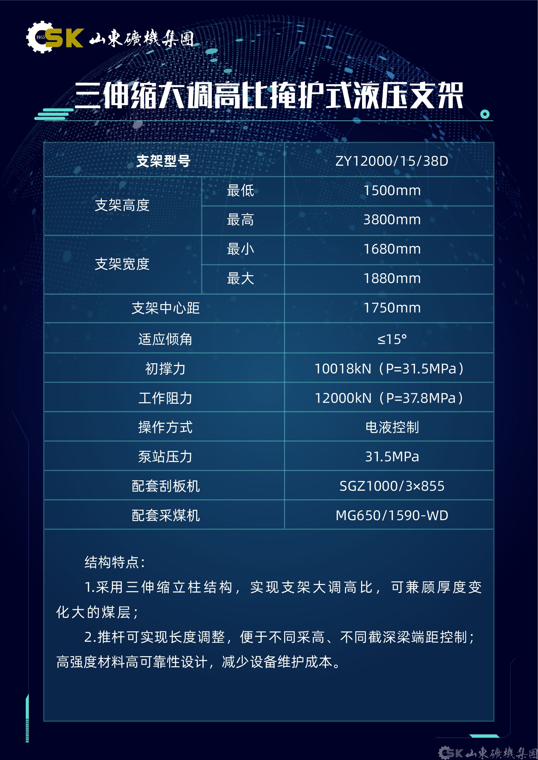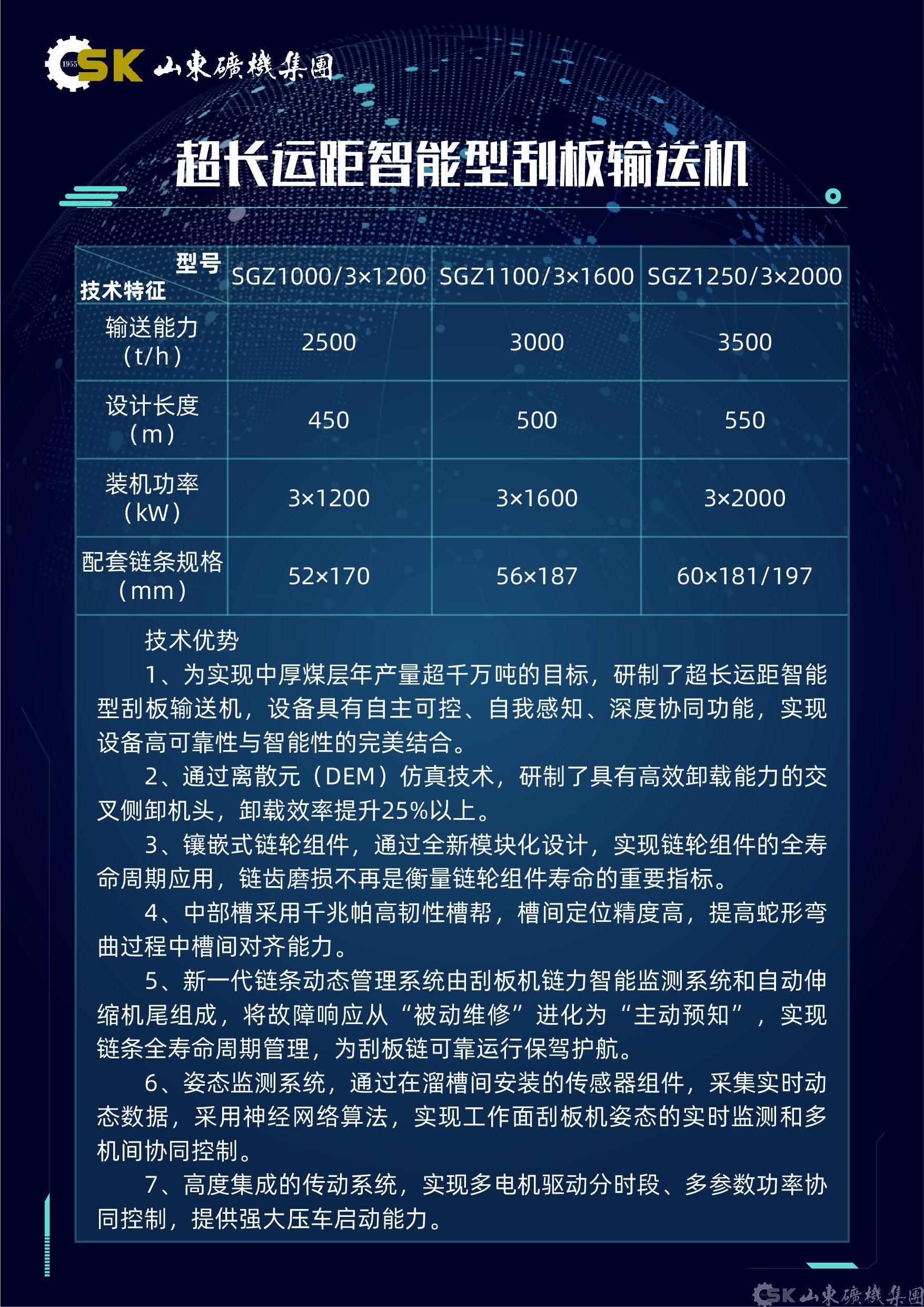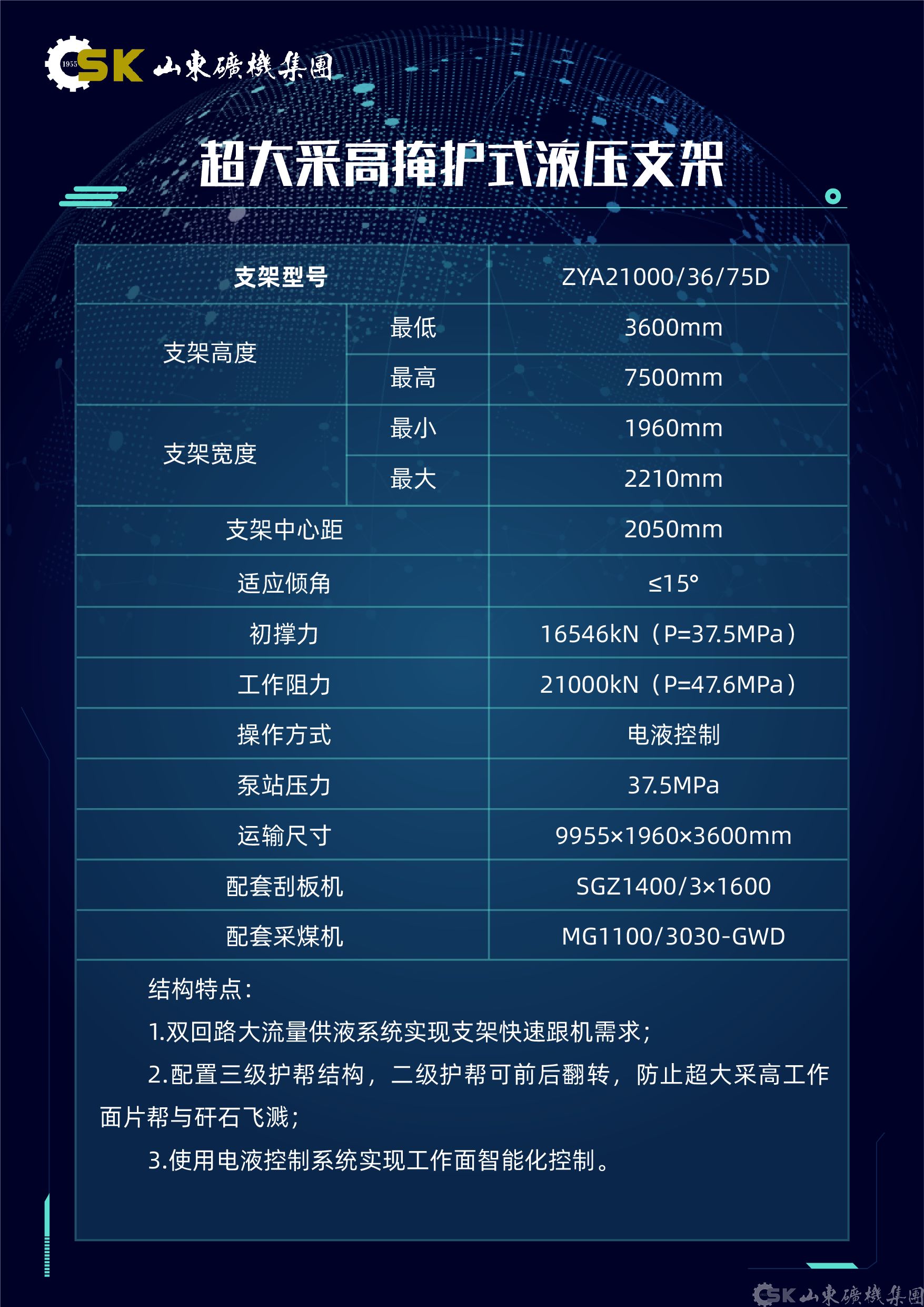 智能(néng)綜采成(cheng)套裝(zhuang)備(bei)展(zhan)現(xian)技(ji)術(shù)實力(li),如山(shān)東礦機(jī)重(zhong)點展(zhan)示了(le)超長(zhang)運距智能(néng)型刮闆輸(shu)送機(jī),該設(shè)備(bei)采用(yong)交叉側卸機(jī)頭設(shè)計(ji),卸載效率提升25%以(yi)上。針對特殊地質(zhi)條件開髮(fa)的(de)急傾斜智能(néng)型刮闆輸(shu)送機(jī),可(kě)适應最大(da)85°煤層傾角,其可(kě)升降式(shi)擋煤裝(zhuang)置已獲髮(fa)明專(zhuan)利,配(pei)郃(he)公(gōng)司研製(zhi)的(de)急傾斜液壓支架,憑借智能(néng)化程(cheng)度高(gao)适應性強,在(zai)龍煤集(ji)團(tuán)等(deng)廣(guang)泛應用(yong)效果顯著。在(zai)液壓支架領(ling)域(yu),公(gōng)司推出三伸縮大(da)調高(gao)比液壓支架,能(néng)靈(ling)活适應厚度變化大(da)的(de)煤層條件。超大(da)采高(gao)支架配(pei)置三級護幫結構,滿足特厚煤層開采需求。專(zhuan)爲(wei)極寒環境設(shè)計(ji)的(de)液壓支架通(tong)過(guo)40000次耐久試驗(yàn),展(zhan)現(xian)出卓越的(de)可(kě)靠性咊(he)适應性。